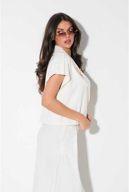 Kamizelka o kroju oversize nadaje stylizacji nowoczesnego charakteru i pięknie buduje sylwetkę. To model, który wygląda lekko, ale bardzo „na poziomie”.