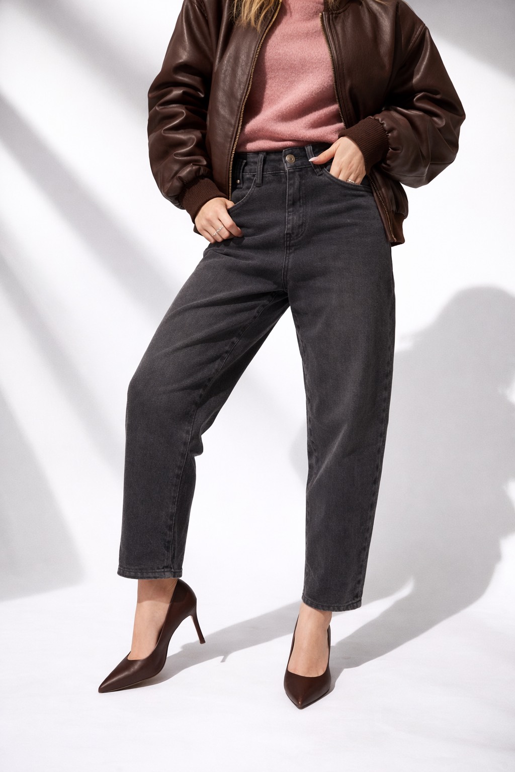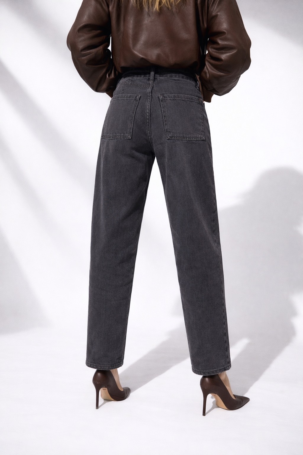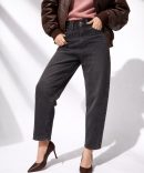 Czarny denim w połączeniu z fasonem balonowym to idealna baza do wiosennych stylizacji – szczególnie dobrze wygląda z pastelami, które są absolutnym hitem tego sezonu. Spodnie sprawdzą się zarówno do szpilek, jak i do sneakersów.